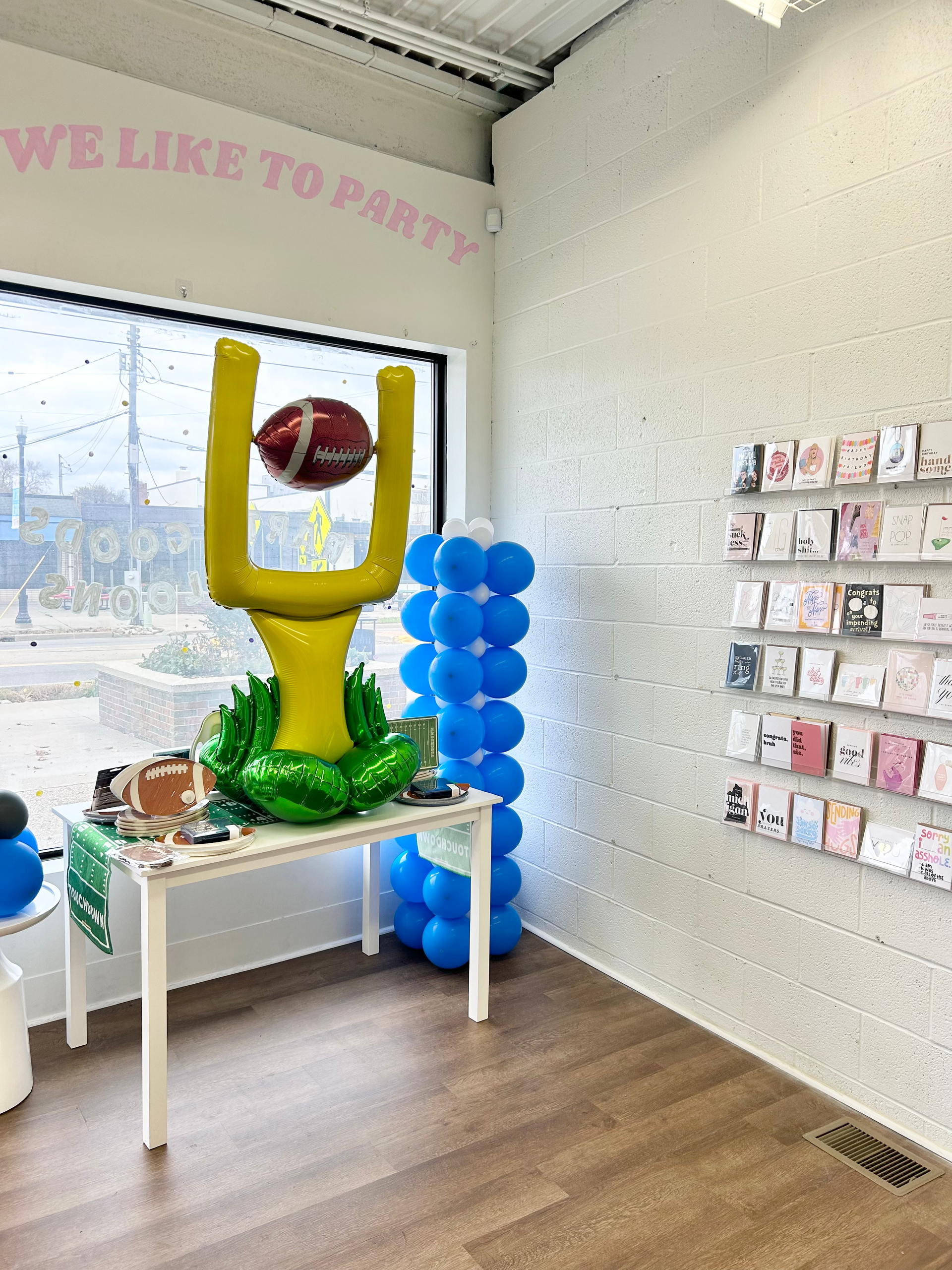 Inquire today about adding balloon Arches, garlands, columns, and centerpieces to your football event!