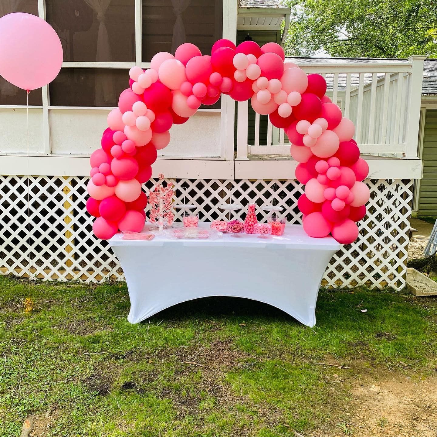Table arches are a classic decoration and they are great for treat and gift tables. The perfect addition to any Graduation open houses, baby and bridal showers, corporate vendor/expo events and much more! They work well outdoors in a variety of settings too. We’re able to custom create balloon arches in a variety of different styles, colors, and sizes including organic balloon arches.